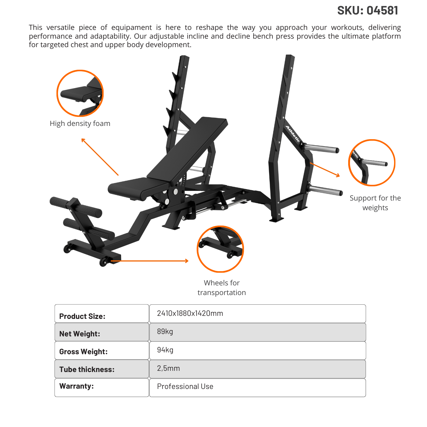 Dynamic Line Adjustable Incline & Decline Bench Press
